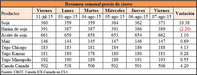 de la semana y 1,09$/t en dólares. En el balance semanal el cereal cedio 88
